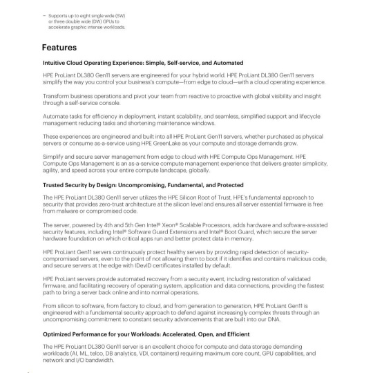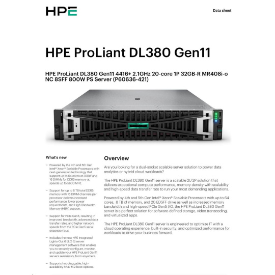 Model Name HPE PL DL380g11 4416+ (2.0/20C/38M/4800) 32G MR408i-o/4G 8-26SFF 1000Wtit 2x10G iLO6 base-T 2U NBD333