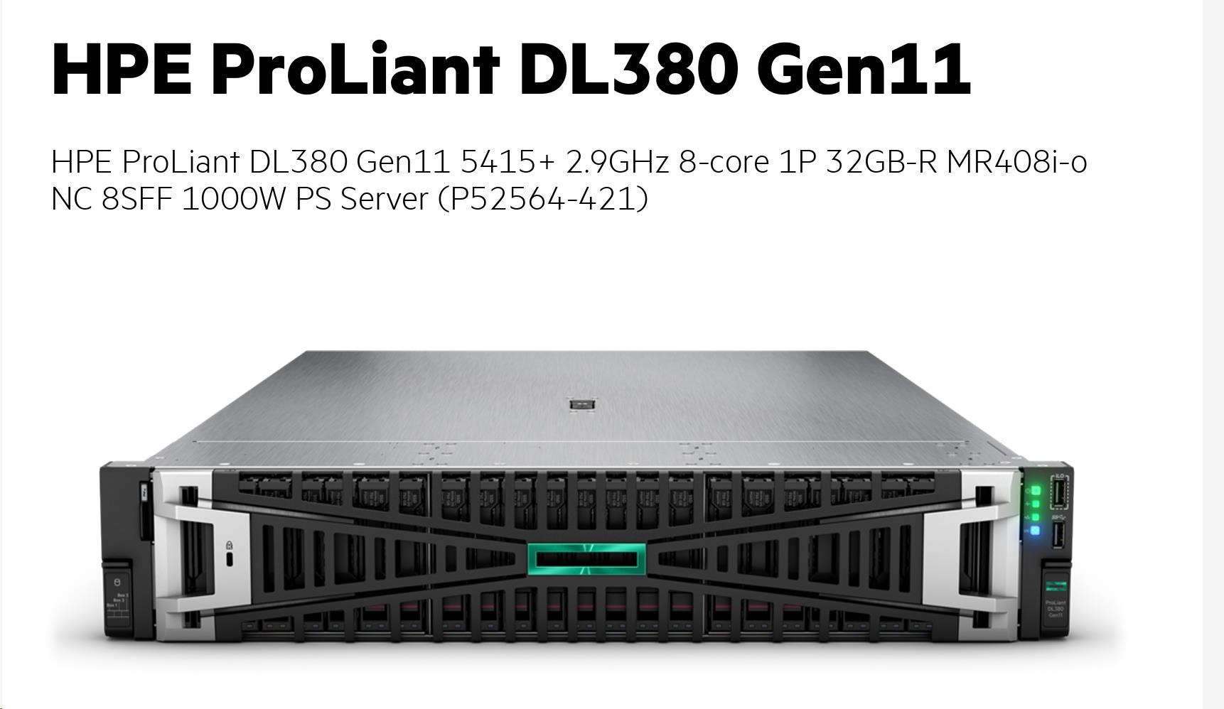 HPE PL DL380g11 5415+ (2.9/8C) 32G (P43328) MR408i-o/4G 8-26SFF 1000W 2x10G-T