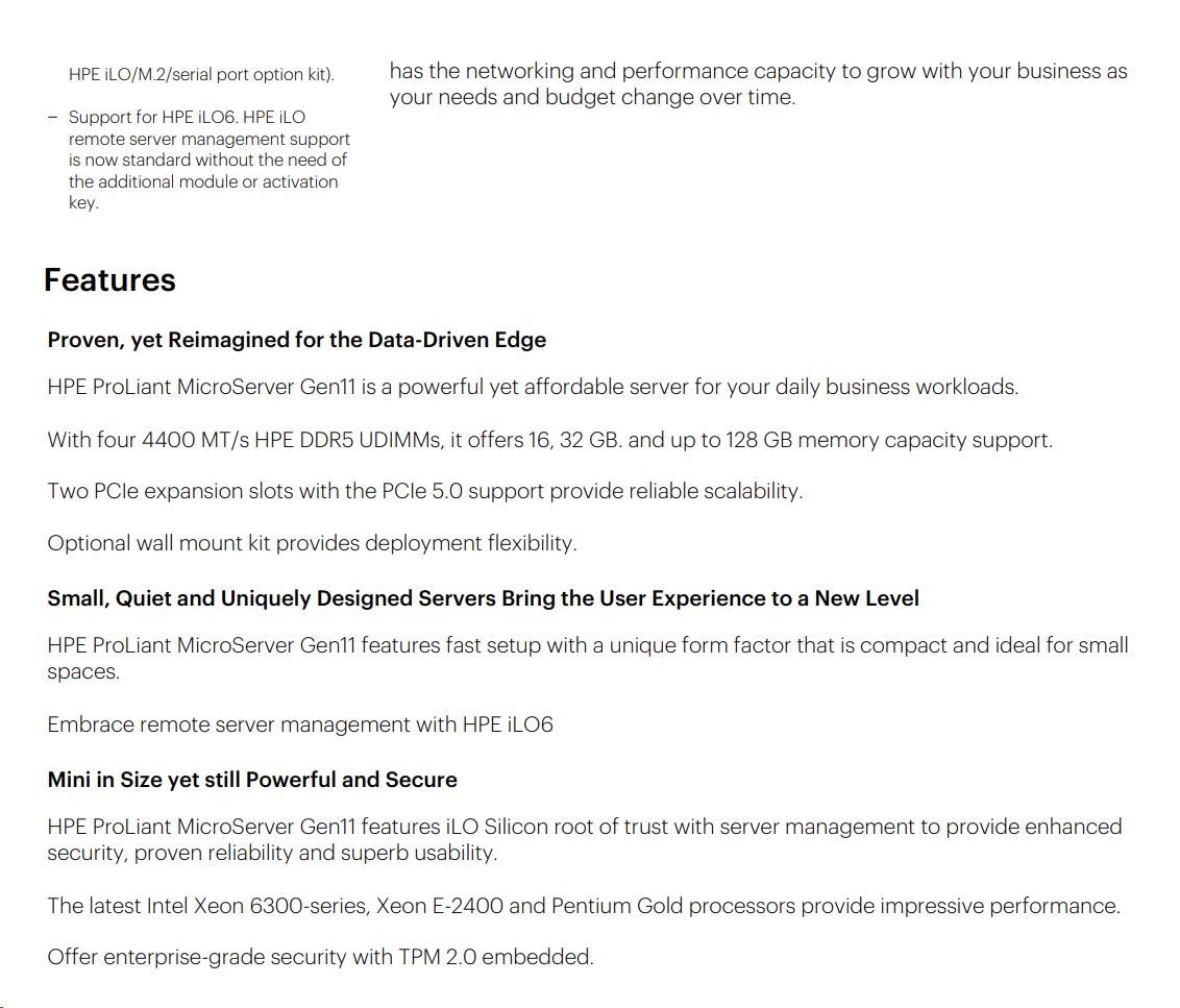 HPE ProLiant MicroServer Gen11 - Specifications