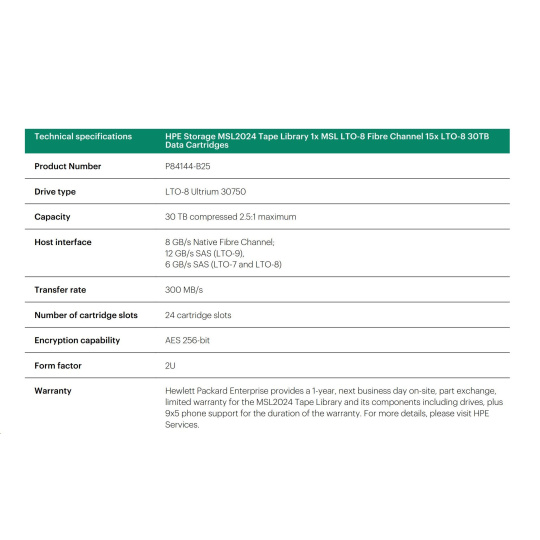 HPE Storage MSL3040 Tape Library 1x MSL LTO-9 Fibre Channel 20x LTO-9 45TB Data Cartridges