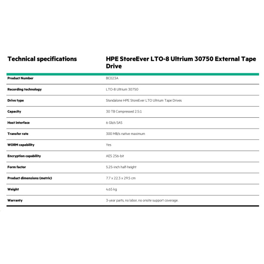 - HPE StoreEver LTO-8 Ultrium 30750 External Tape Drive