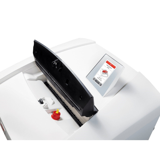 Vstup je vybavený bezpečnostným dotykovým spínačom. Masívne oceľové nože poháňané cez prevodovku moderným výkonným riadeným motorom môžu skartovať papiere s kancelárskymi sponkami, ako aj plastové karty a CD/DVD.