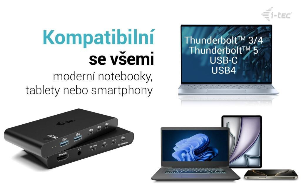 i-tec KVM Docking Station HDMI pre 2 hostiteľov, Power Delivery 2x 100W