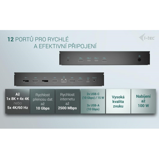 i-tec Univerzálna 5x 4K/60Hz Display Docking Station + Power Delivery 100W