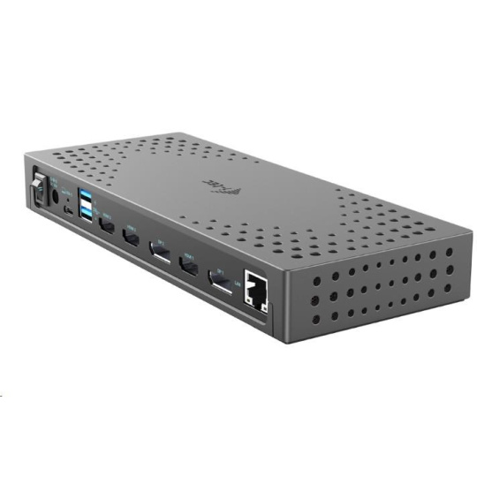 Výkonná profesionálna dokovacia stanica Gen 2, ktorá podporuje výstup až na tri externé monitory vo vysokom rozlíšení až 4K. Dokovaciu stanicu je možné prakticky použiť so všetkými notebookmi, pretože podporuje pripojenie ku všetkým bežným portom: 3.0, USB-C a Thunderbolt“ 3/4 a zároveň podporuje všetky bežné súčasné operačné systémy. Pripojenie ku trom monitorom však bude možné iba v prípade, že je notebook vybavený portom Thunderbolt“ 3/4 alebo portom USB-C, ktorý podporuje prenos videa (režim USB-C DP Alt). V prípade pripojenia k notebooku s portom USB 3.0 budú podporované iba dva monitory.