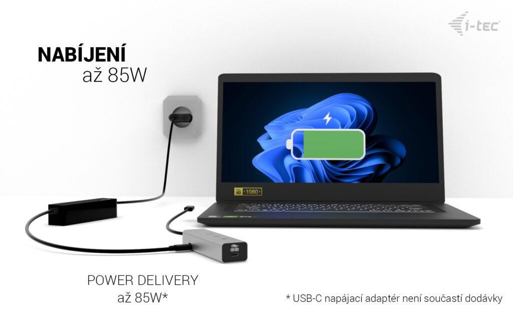 i-tec USB-C Charging Metal HUB 5port s USB-C video 8K + Power Delivery 85W