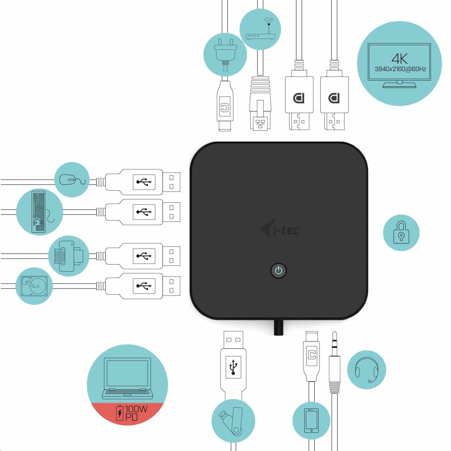 dokovacia stanica i-tec USB-C s dvoma displejmi, Power Delivery 100 W