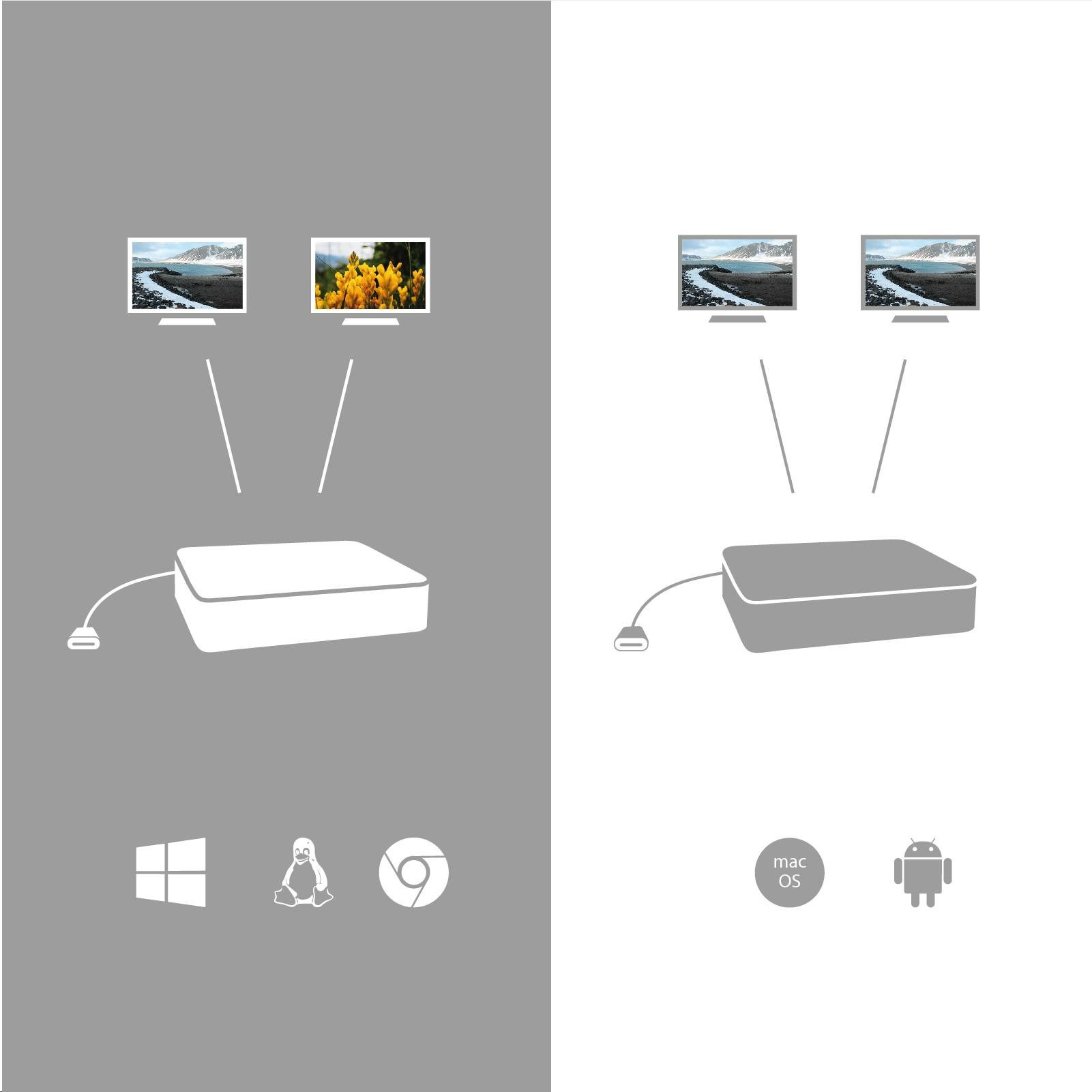 Kancelárska dokovacia stanica USB-C, ktorá podporuje až 2× externý monitor s rozlíšením 4K. Stanica je kompatibilná s akýmkoľvek notebookom vybaveným portom USB-C alebo Thunderbolt 3. 6x port USB, spoľahlivé a rýchle pripojenie k firemnej sieti vďaka integrovanému portu LAN a podpora inštalácie za monitor - to všetko robí z tejto dokovacej stanice ideálneho spoločníka pre profesionálov. Samozrejme, podporuje nabíjanie notebooku alebo tabletu až do 100 W.