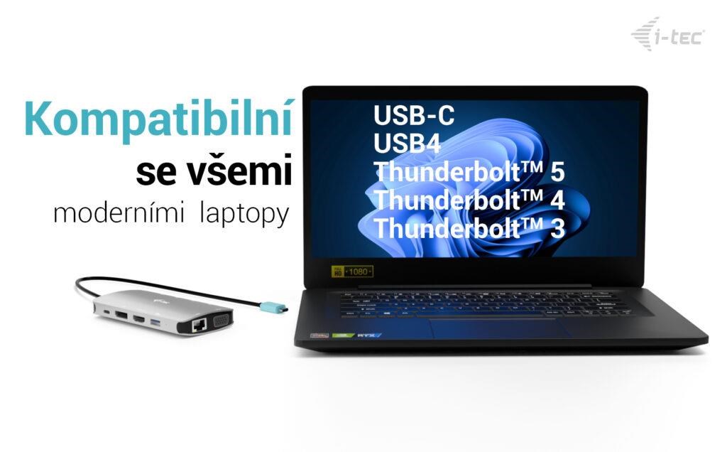 Dokovací stanice je kompatibilní s širokou škálou zařízení včetně notebooků a tabletů s USB-C, USB4 nebo Thunderbolt“ rozhraním.