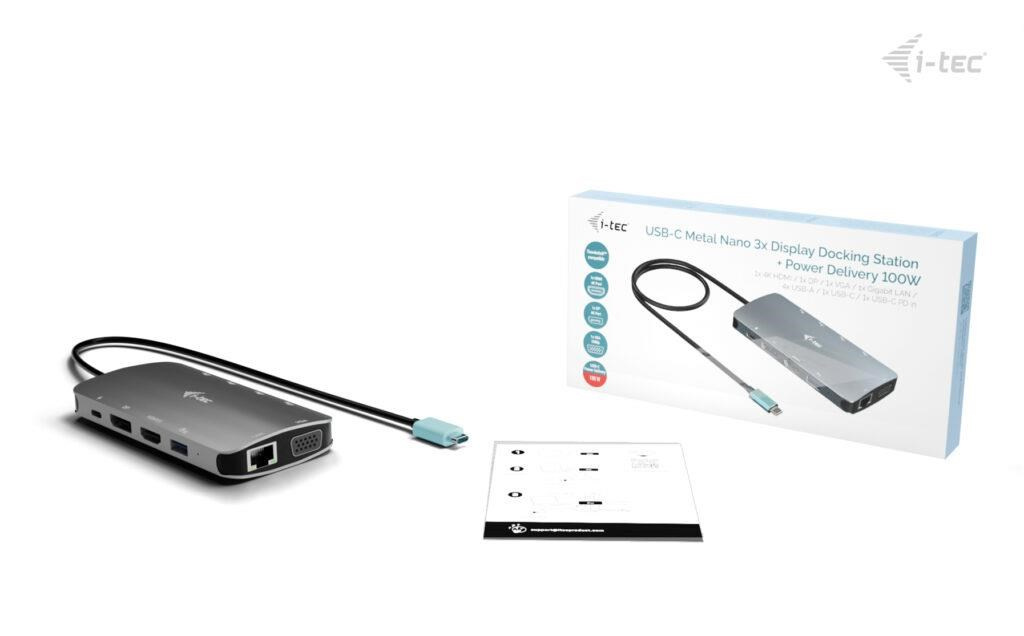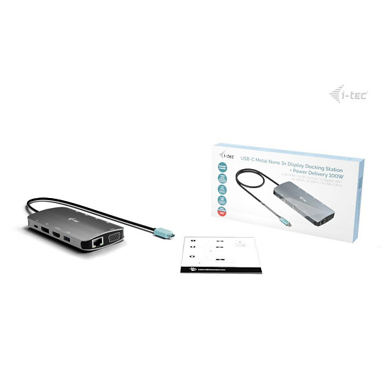 i-tec USB-C Metal Nano 3x Display (DP, HDMI and VGA) Docking Station, PD 100 W