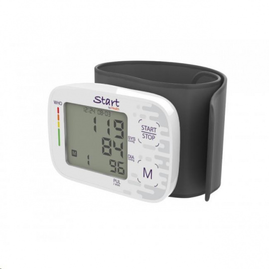Tlakomer meria aktuálne hodnoty systoly, diastoly a pulzu pohodlne na zápästí ruky. Upozornenia na nepravidelný srdcový rytmus a stupnica hodnotenia krvného tlaku odporúčaná WHO vám pomôžu lepšie sa starať o svoje zdravie.