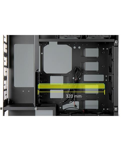 Oddelené pozície pre HDD a PSU zabezpečujú ideálne prúdenie vzduchu cez zadné vetracie otvory do vonkajšieho priestoru bez toho, aby teplému vzduchu bránili základné dosky alebo grafické karty.