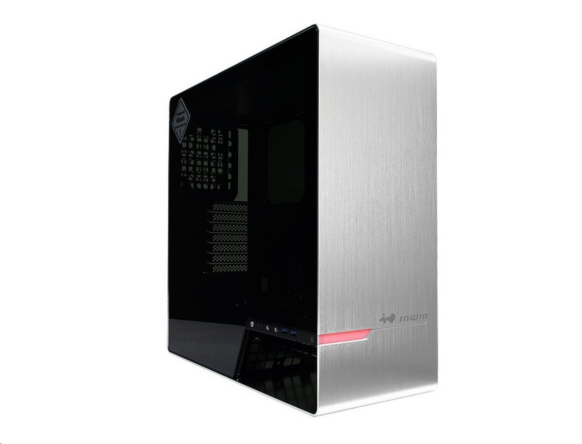 IN WIN 905, Mid Tower, priehľadná strana, bez zdroja napájania, strieborná