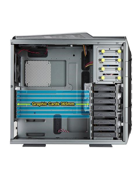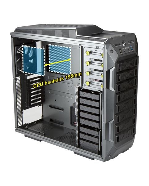 Aby ste si mohli vychutnať maximálny výkon svojho počítača, je možné do skrine zabudovať dve jednotky vodného chladenia, jednu v hornej časti s dĺžkou až 360 mm a druhú v spodnej časti s dĺžkou až 240 mm. Do skrine možno umiestniť až 10 ventilátorov (vrátane 4 predinštalovaných) na optimálnu cirkuláciu vzduchu.