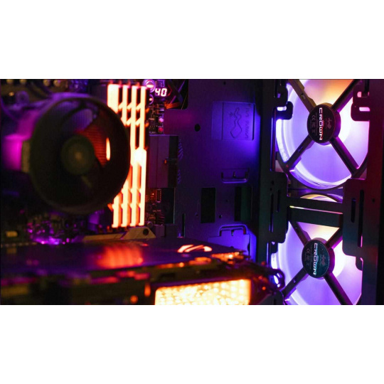Ventilátor CROWN AC120 má 9 lopatiek, ktoré sú vytvarované spolu s vnútorným rámom, čo účinne tlačí vzduch do stredu ventilátora a vytvára turbínový efekt na dosiahnutie vyššieho tlaku.