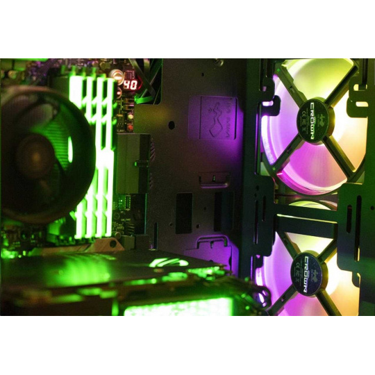 Pripojte dodaný adresovateľný kábel k adresovateľnému headeru základnej dosky. Efekt žiarivého osvetlenia CROWN AC140 možno krásne a jednoducho demonštrovať pomocou kompatibilného softvéru základnej dosky.