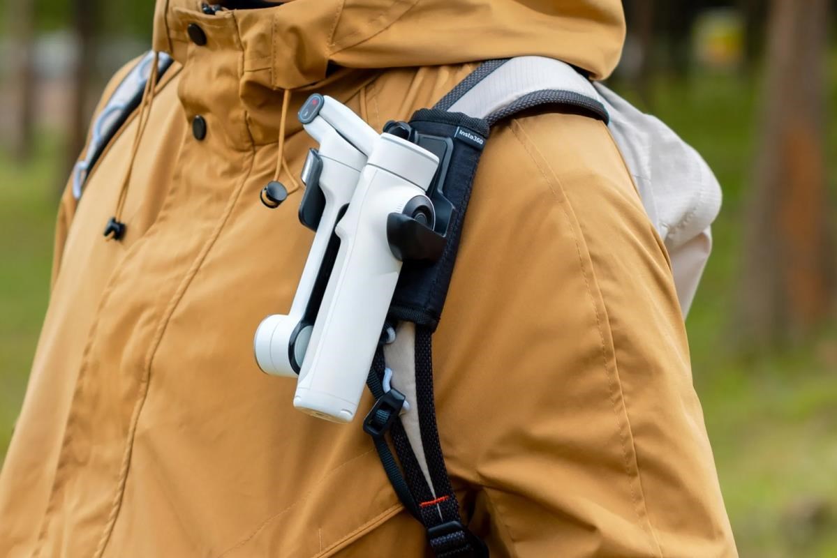 Držiak na upevnenie Flow 2 Pro na batoh. Bezpečnostná západka zabezpečuje pevné uchopenie. Kompatibilný s rôznymi šírkami popruhov, s protisklzovým silikonovým polstrovaním pre stabilitu.