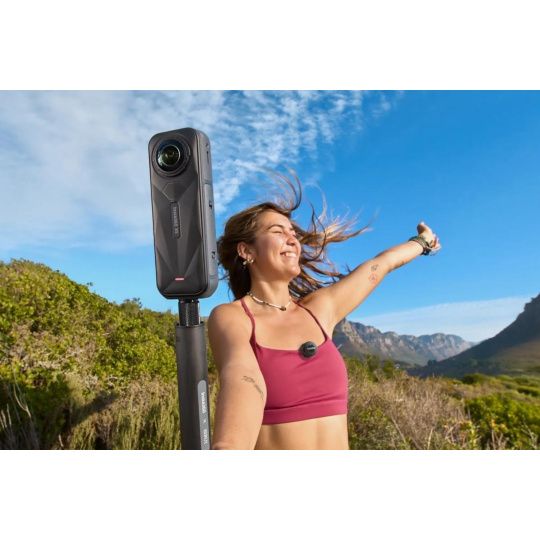 Priame bezdrôtové pripojenie ku kamerám Insta360 X5, Ace Pro 2. Mikrofón využíva Bluetooth Low Energy.
