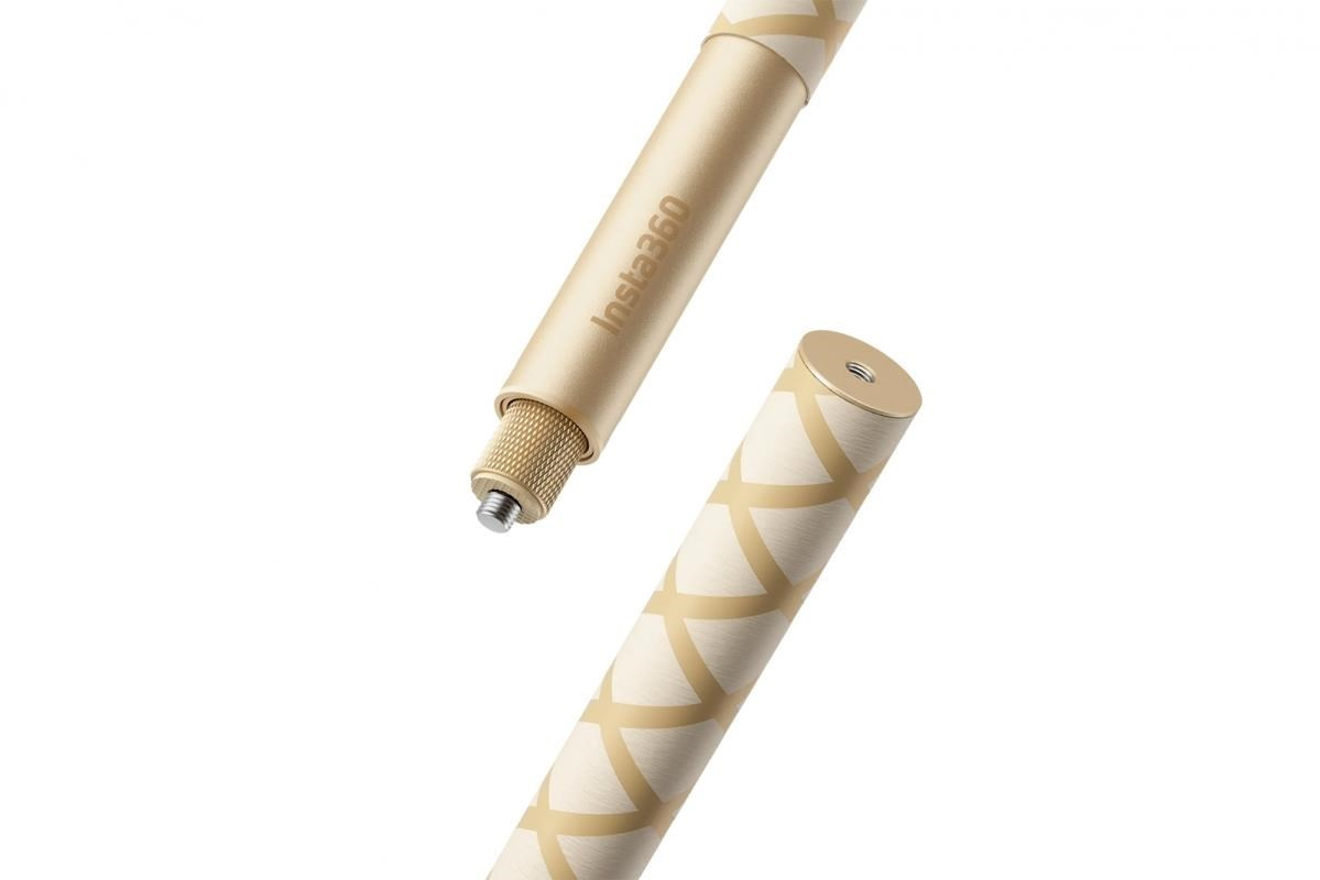Selfie tyč pre akčné kamery Insta360. Nastaviteľná dĺžka 23,3 cm až 114 cm. Materiál: hliník. Spôsob upevnenia: 1/4" skrutka. Tyč je automaticky odstránená z capturingových záberov.