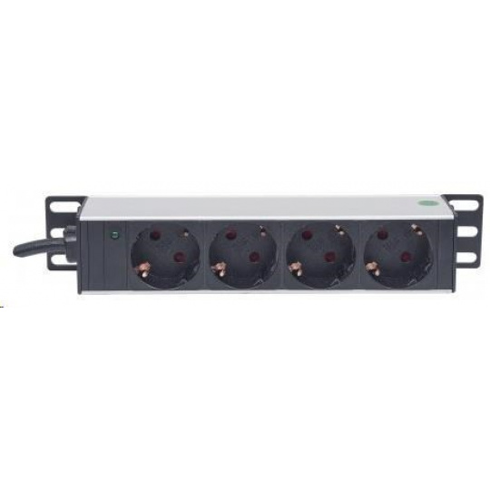 Intellinet 10" 1U Rackmount 4-Way Power Strip - nemecký typ, distribučný panel, 4x DE zásuvka, 1.8 m kábel