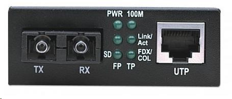 -Rýchlosť prenosu dát: 100 Mb/s -Jeden port 10/100Base-TX RJ45, maximálna vzdialenosť 100 m / 300 ft. -RJ45 port s podporou Auto MDI/MDI-X a automatickým vyjednávaním -Jeden 100Base-FX viacrežimový optický SC duplexný port -Podpora vzdialenosti optických vlákien: do 2 km / 1.24 míľ (62.5/125 alebo 50/125 µm kábel) -Vlnová dĺžka: 1310 nm -Riadenie toku -Stavové LED diódy pre napájanie a Link/TX pre oba porty -Externý napájací adaptér, 5 V DC..