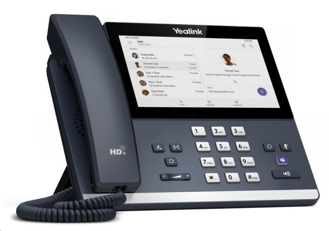 Yealink MP56 bezproblémovo poskytuje služby Microsoft Teams na stolnom telefóne a je určený pre kancelárskych pracovníkov. MP56 má 7-palcový kapacitný dotykový displej pre bohatú vizuálnu prezentáciu a jednoduchú navigáciu v ponuke, ale aj vlastné používateľské rozhranie prispôsobené pre Teams, vyhradené tlačidlo Teams, kľúčové volacie funkcie a vyššiu odozvu. Všetko toto poskytuje používateľom pohodlnú Teams komunikáciu a efektívne kancelárske prostredie.