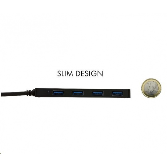 Tento HUB ponúka štyri USB 3.0 s funkciou Plug & Play a štandardným nabíjaním cez USB - HUB automaticky rozpozná, či je pripojené nabíjacie zariadenie USB. USB 3.0 je dôležitý najmä pri prenose dát z USB 3.0 pamäťových kariet a flash diskov, kde je jeho vysoká prenosová rýchlosť najužitočnejšia. LED dióda zobrazuje stav čítania a zápisu údajov.