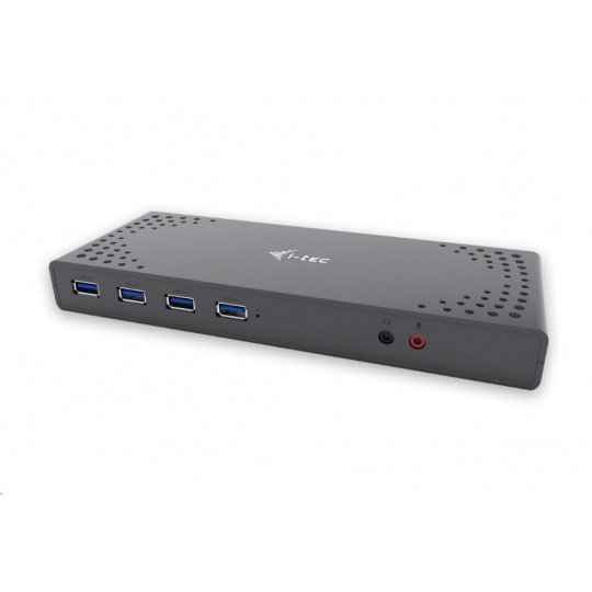 i-tec USB 3.0 / USB-C 5K Univerzálna duálna dokovacia stanica, 2x 4K 60Hz video, 2x HDMI, 2x Display Port, 1x Ethernet, 6x USB 3.0, 1x audio/mikrofónny konektor, prepínač ON/OFF, podpora zámku Kensington, pre notebook, tablet, Windows, Mac OS, Linux, Android, kompatibilný s Thunderbolt 3