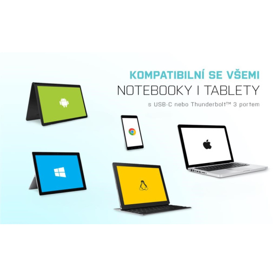 - OS: Vyžaduje rozhranie USB-C s podporou "Alternatívneho režimu DisplayPort" (nie všetky zariadenia/systémy s rozhraním USB-C majú tento štandard) alebo port Thunderbolt 3: Windows 10 32/64bit, Mac OS X, Chrome OS (Google)