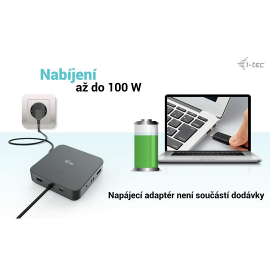Poskytuje až 100W Power Delivery pre kompatibilné notebooky a tablety s rozhraním USB-C, USB4 a Thunderbolt. Hostiteľské zariadenie musí podporovať USB-C Power Delivery.