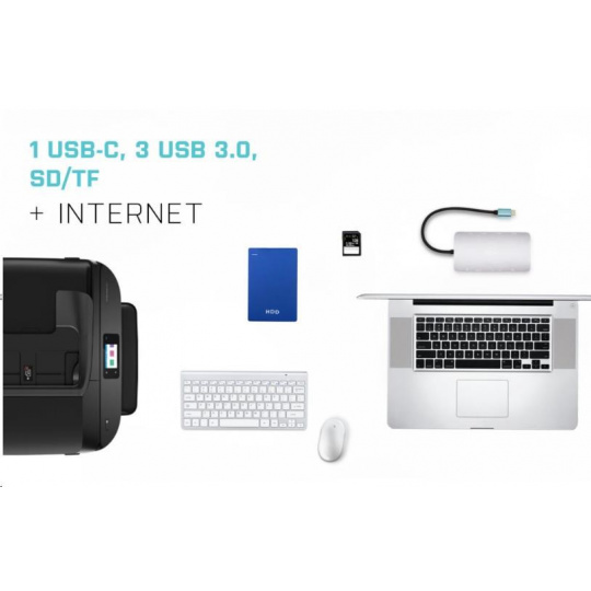 Malá kovová dokovacia stanica USB-C, ku ktorej môžete ľahko pripojiť externý monitor alebo projektor cez port HDMI alebo VGA. Stačí pripojiť notebook alebo tablet (bez potreby ovládačov) a využiť rýchle dátové pripojenie USB, pripojenie k internetu cez port LAN a možnosť pripojiť slúchadlá a mikrofón. Samozrejme, podporuje napájanie notebooku až do 100 W, čo znamená, že budete môcť nabíjať všetky notebooky a tablety, ktoré podporujú nabíjanie cez USB-C (USB-C Power Delivery).