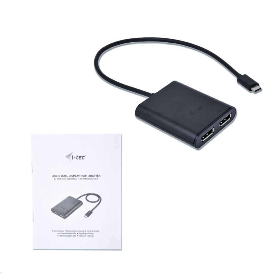 adaptér i-tec USB-C na duálny Display Port, 2x Display Port 4K Ultra HD, kompatibilný s Thunderbolt 3