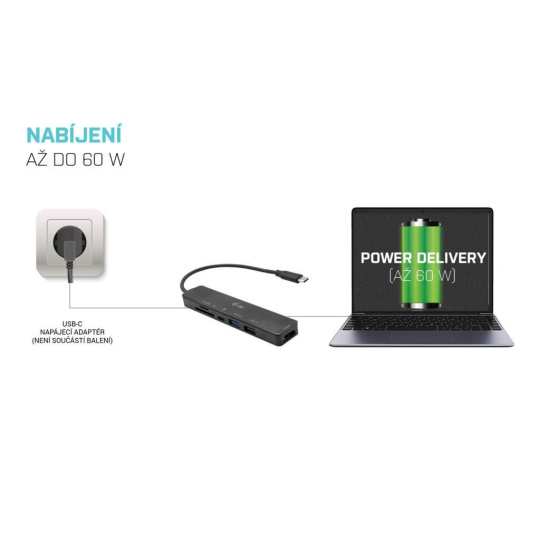 Malá dokovacia stanica, ktorá napriek veľmi kompaktným rozmerom ponúka všetko, čo potrebujete na základnú prácu. Pripojte externý monitor s rozlíšením až 4K, dva porty USB na pripojenie periférnych zariadení a čítačku kariet SD a microSD na pomoc pri prenose dát. Samozrejme, notebook môžete napájať aj výkonom až 60 W (napájací adaptér nie je súčasťou balenia).