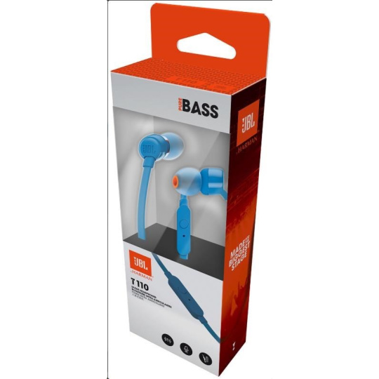 .JBL T110 Black špuntová sluchátka, 3,5 mm jack, mikrofon, modrá