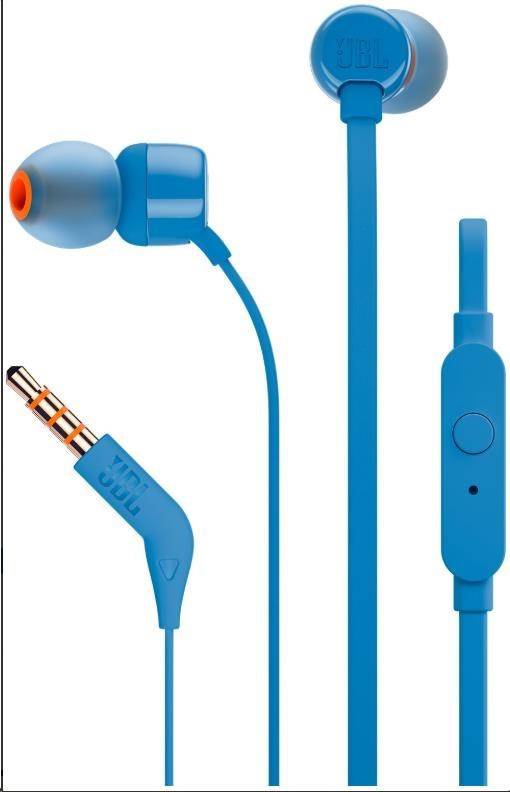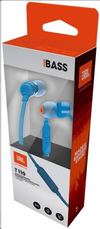 .JBL T110 Black špuntová sluchátka, 3,5 mm jack, mikrofon, modrá