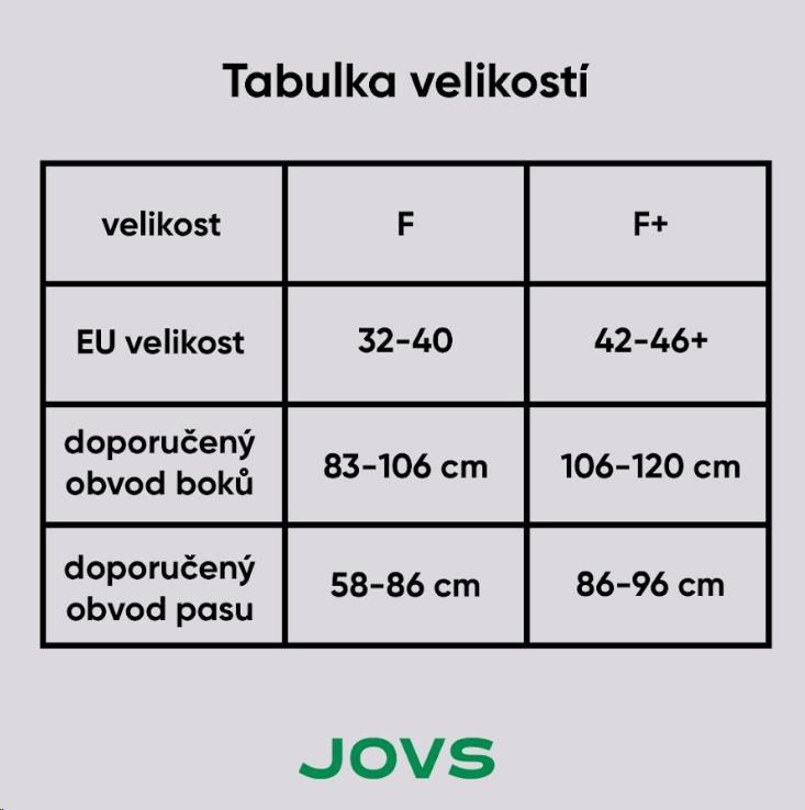 - Veľkosti: F (pre obvod bokov 66-85 cm), F+ (pre obvod bokov 80-90 cm)