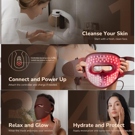 - Štyri klinicky overené vlnové dĺžky pre komplexnú starostlivosť o pleť: modrá, jantárová, červená a blízka infračervená.