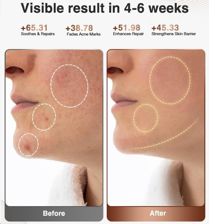 - Viditeľné výsledky za 4-6 týždňov: Pravidelné používanie preukázateľne znižuje akné, vrásky, pigmentáciu a zlepšuje elasticitu pleti.