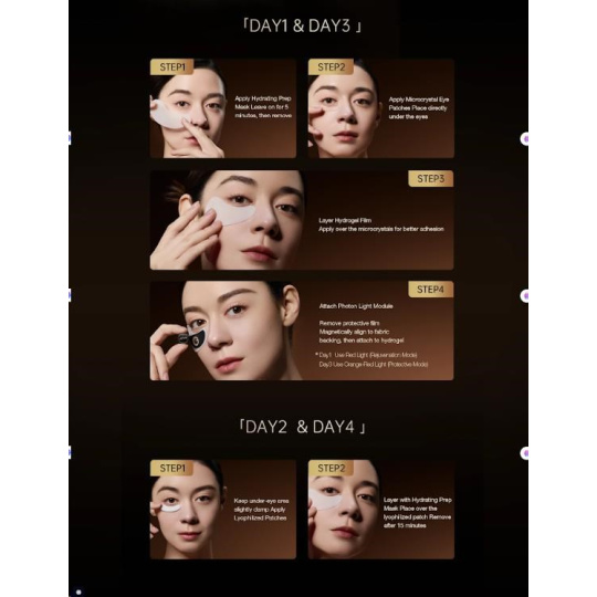 Tento unikátny systém nie je len ďalší očný krém alebo maska. Je to intenzívna 4-dňová kúra, ktorá vo svojej podstate spája tri špičkové technológie: patentované transdermálne mikrokrystaly, silnú fotónovú terapiu a vysoko koncentrované aktívne látky, ktorých zloženie je inšpirované najdrahšími ošetreniami z estetických kliník. Vďaka tomu sa účinné látky dostanú až 98x efektívnejšie do hlbokých vrstiev pokožky, než je tomu u bežných produktov.
