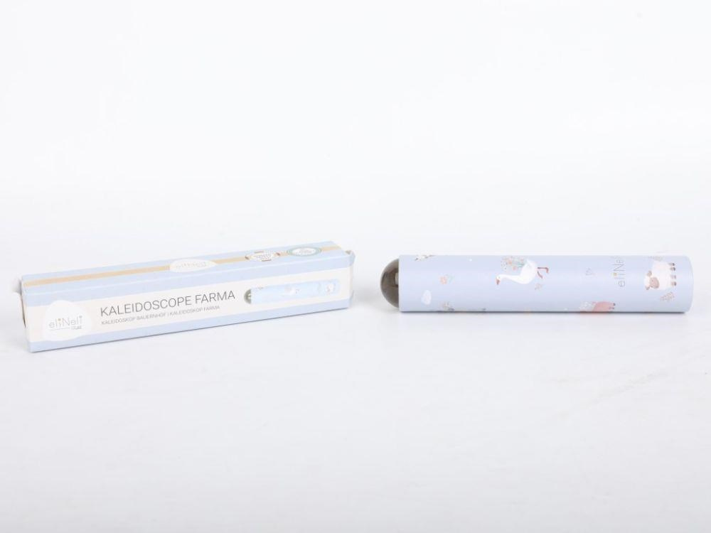 Kaleidoskop v neutrálnych pastelových farbách, s motívom zvieratiek z farmy, v ich skutočnej, reálnej podobe, je krásnym darčekom pre zvedavé deti. Stačí len ľahko otáčať krasohľadom a usporiadanie sklíčok a teda aj obrázce sa budú meniť a preobohacovať. Krasohľad, optický prístroj, ktorý pomocou sklíčok a zrkadiel vytvára čarovné obrázky, rozvíja u detí fantáziu a kreativitu.