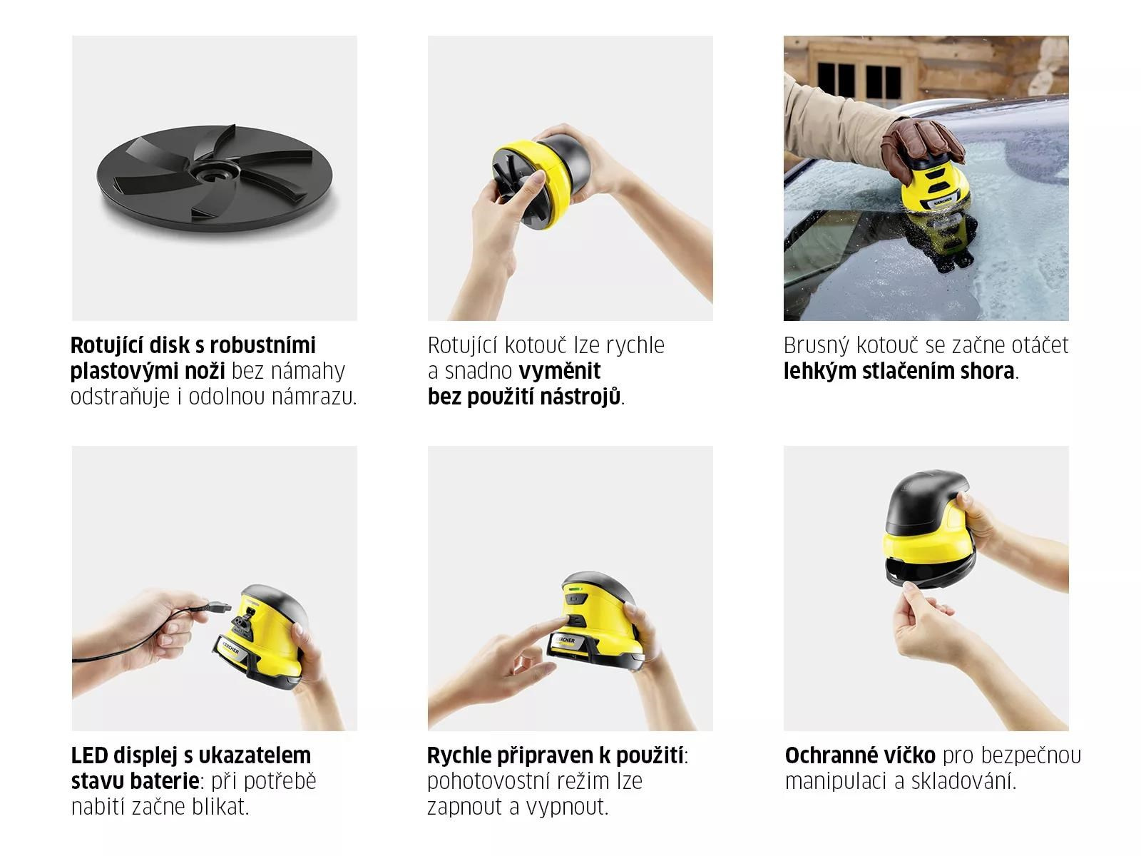 Už žiadne náročné vyprošťovanie auta z ľadovej kryštalickej vrstvy. Ruky nechajte pekne v teple rukavíc a uľahčite si prácu pomocou elektrickej škrabky na ľad EDI 4. Rotujúci kotúč s plastovými čepeľami pracuje rýchlo a hravo zvládne aj silnú námrazu, aniž by poškodil sklá. Stačí iba ľahko pritlačiť na zmrznutý povrch a ľad sa okamžite uvoľní. Prípadné opotrebenie čepeľí ľahko vyriešite výmenou za nový nástavec, ktorý si môžete zakúpiť v sekcii náhradných dielov. Výmena je veľmi jednoduchá a zvládnete ju aj bez náradia. Po použití škrabku jednoducho uložíte do ochranného krytu, ktorý zabráni jej mechanickému poškodeniu. Stav batérie ľahko overíte pomocou LED signalizácie, ktorá vám bliknutím oznámi nutnosť dobitia. Pridajte k nákupu ešte letnú sadu nástavcov a zo škrabky sa počas pár ťahov stane čistička skiel.