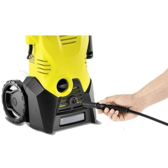 U čističa Kärcher K 3 oceníte jednoduché a pohodlné pripojenie vysokotlakovej hadice. Čistič obsahuje praktickú nádobku na čistiace prostriedky, ktorá vám uľahčí čistenie. Aby sa kábel zbytočne nelámal po zemi, je Kärcher K 3 vybavený veľkým držiakom na kábel.
