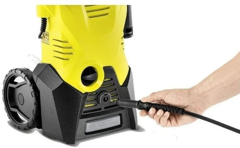 U čističa Kärcher K 3 oceníte jednoduché a pohodlné pripojenie vysokotlakovej hadice. Čistič obsahuje praktickú nádobku na čistiace prostriedky, ktorá vám uľahčí čistenie. Aby sa kábel zbytočne nelámal po zemi, je Kärcher K 3 vybavený veľkým držiakom na kábel.