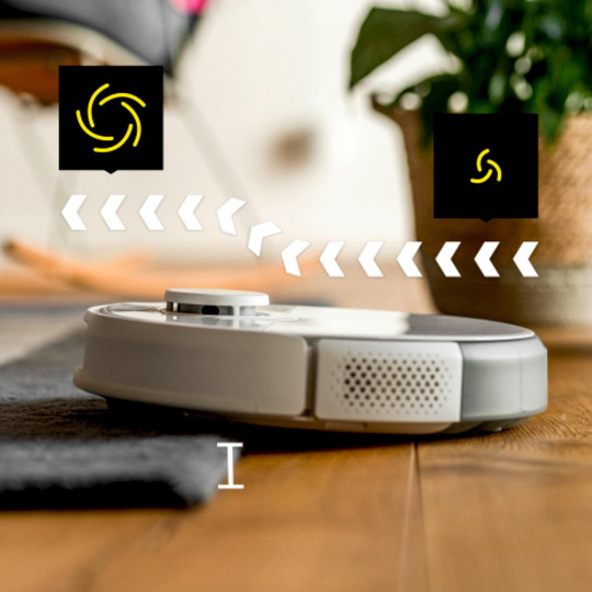Vďaka rýchlej a robustnej navigácii LiDAR robot presne skenuje a mapuje miestnosti a zabezpečuje najlepšiu orientáciu pre spoľahlivé upratovanie aj v tme. Vďaka dvojitému laserovému senzoru a kamere na robote dokáže rozpoznať aj malé či ploché objekty, ktoré sú pre systém LiDAR príliš malé (napr. topánky, ponožky alebo káble). Ak systém s dvojitou laserovou kamerou rozpozná prekážky, zahrnie ich do mapy. Robot je inteligentným navigačným manévrom obíde a vyhne sa uviaznutiu alebo poškodeniu.