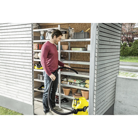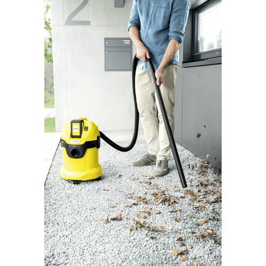 Akumulátorový vysávač WD 3 Battery Set zvládne suché aj mokré vysávanie aj bez prívodu elektrickej energie. Navyše ho využijete aj ako vetrák na listy a ďalšie nečistoty. Energia je zabezpečená 36V batériou Kärcher, ktorá na praktickom LCD displeji pomocou Real Time Technology zobrazuje zvyšnú kapacitu v minútach – prevádzková doba na jedno nabitie je 15 minút. Batéria je navyše kompatibilná a využijete ju aj v ďalších aku strojoch Kärcher platformy 36 V. Vysoké výsledky upratovania zabezpečí kvalitný patronový filter, ktorý si poradí so všetkými nečistotami - či už sa chystáte na mokré alebo suché nečistoty, filter nie je potrebné meniť. So štrbinovou hubicou dôkladne vyčistíte terasu aj dielňu, menej dostupné miesta potom vysajete pomocou šterbinovej hubice. Vďaka odnímateľnej ergononomickej rukoväti môžete príslušenstvo ľahko pripojiť priamo na hadicu. Špina sa hromadí v objemnej nádrži s objemom 17 l, ktorú po upratovaní ľahko vyprázdnite pomocou systému "Pull & Push", ktorý umožňuje rýchle a bezpečné otváranie a zatváranie nádoby. A keď je všetko hotové, hadicu umiestnite do parkovacej polohy, príslušenstvo zasuniete do stroja a vysávač jednoducho vmestnáte aj do preplnenej garáže. Batéria a nabíjačka sú súčasťou balenia.