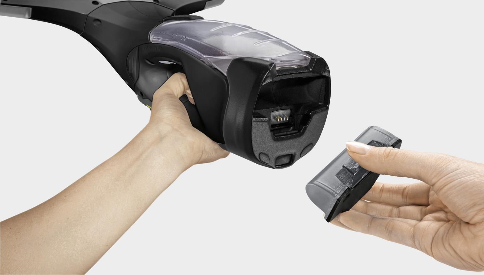 Vďaka vyberateľnej a ako príslušenstvo dodávanej batérii je možné okná čistiť bez prerušenia a ľubovoľne dlho. Okenný vysávač WV 5 Plus Anniversary Edition: Pohodlné čistenie hrán