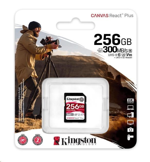 Kingston 256GB Canvas React Plus SDXC UHS-II 300R/260W U3 V90 pre Full HD/4K/8K