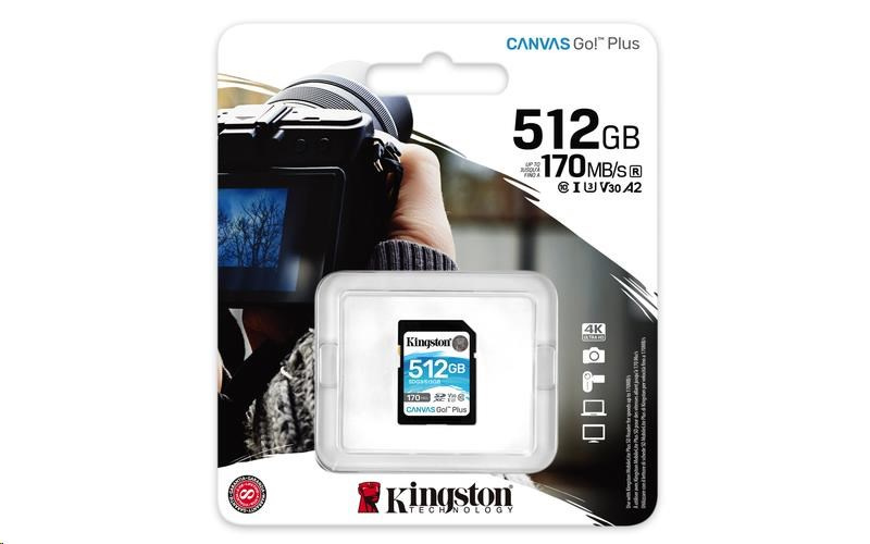 .Kingston SDXC karta 512GB Canvas Go! Plus, R:170/W:90MB/s, Class 10, UHS-I, U3, V30