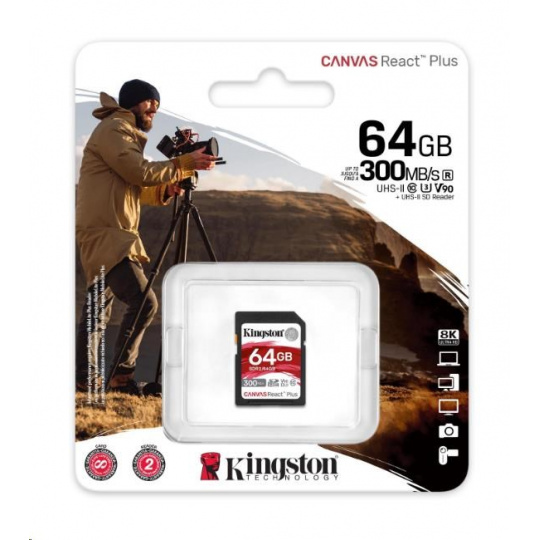 Kingston 64GB Canvas React Plus SDHC UHS-II 300R/260W U3 V90 pre Full HD/4K/8K