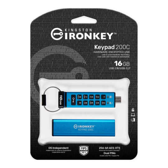 Rada Kingston IronKey Keypad 200 sa skladá z hardvérovo šifrovaných diskov USB typu A a USB typu C nezávislých od operačného systému s alfanumerickou klávesnicou pre jednoduchý prístup pomocou kódu PIN. KP200 obsahuje 256-bitové hardvérové šifrovanie XTS-AES. Je tiež certifikovaný podľa štandardu FIPS 140-3 Level 3 (pending) pre zabezpečenie vojenskej úrovne s vylepšeniami, ktoré ďalej zvyšujú laťku ochrany dát. Jeho obvody sú pokryté vrstvou špeciálneho epoxidu, ktorý takmer znemožňuje vybratie súčiastok bez ich poškodenia; tento odolný epoxid bráni útokom na polovodičové súčiastky.